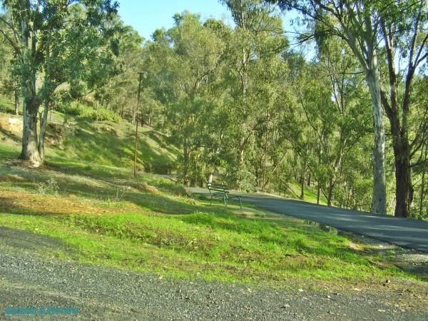 Carretera del dique con banco de descanso,