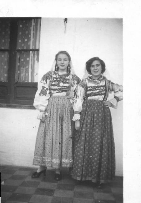 Con el traje típico,