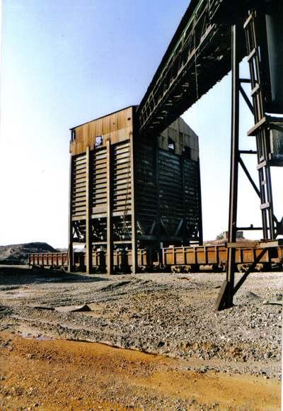 Bueno, aquí vemos el embarcadero de carga del mineral en los vagones del tren, cargas que en sus tiempos se efectuaban con bastante frecuencia, y si nos fijamos, vemos ese color marrón en la tierra, consecuencia de los restos del mineral o el oxido del mismo.