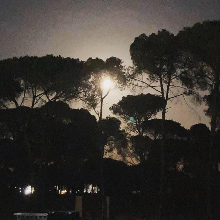 Anochecer primordial con el relente y luz de la mina a lo lejos,