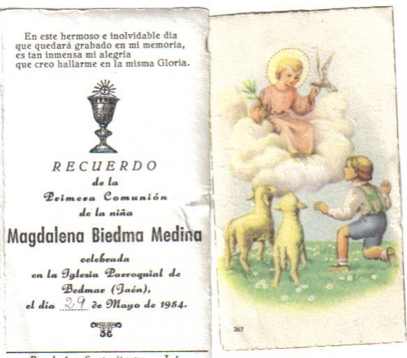 Te dire alguno. La primera la del recordatorio, es Magdalena la hija de Jose M. el Manquillo, la 2ª es Loli la del Estanco, la 3ª es Aguedita la hija de Juan Maria el de la Luz, la 4ª Andrea la Francisco Tobalón, Casada Con Salustiano el de Aguedica. y de los chicos. Martín el hijo de D. Cesareo el Médico, Placido el del tio Urbano, J. Luis el de Miguel Maria, Bartolome el... Hola “BARRERA” soy el marido de Rosario”CAVILA” todos estos bonitos recordatorios los tenía mi suegra guardados y los puse porque me pareció agradable que algún interesado los viera y le gustara recordarlos. Yo no creo reconocer a ninguno. Para Alejandro "Los Jimenatos". Esta Chica hoy Sra. y con Hijos fué amiga en mi