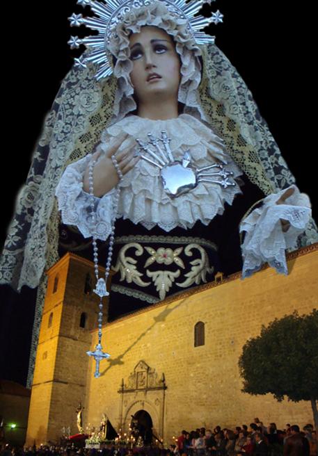 Virgen de los Dolores y la iglesia,