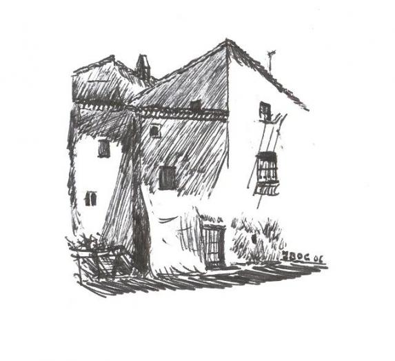 Su origen se debe a una prueba que quise hacer de la técnica de tinta negra con boligrafo para dibujar posteriormente una panorámica de Castillo de Locubín a partir de esta técnica que da la sensación del resultado de un grabado en blanco y negro. La panorámica aun está pendiente de dibujar pero me gustaría empezarla este verano de 2010.