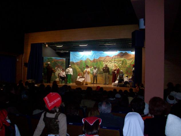 Participando en un teatro en Navidad,