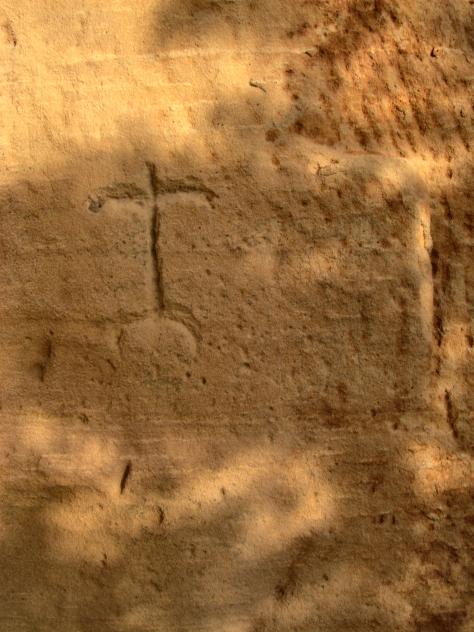 cruz grabada en la pared. Me intriga esta cruz ¿Quién la puso? ¿Y con qué finalidad?.
