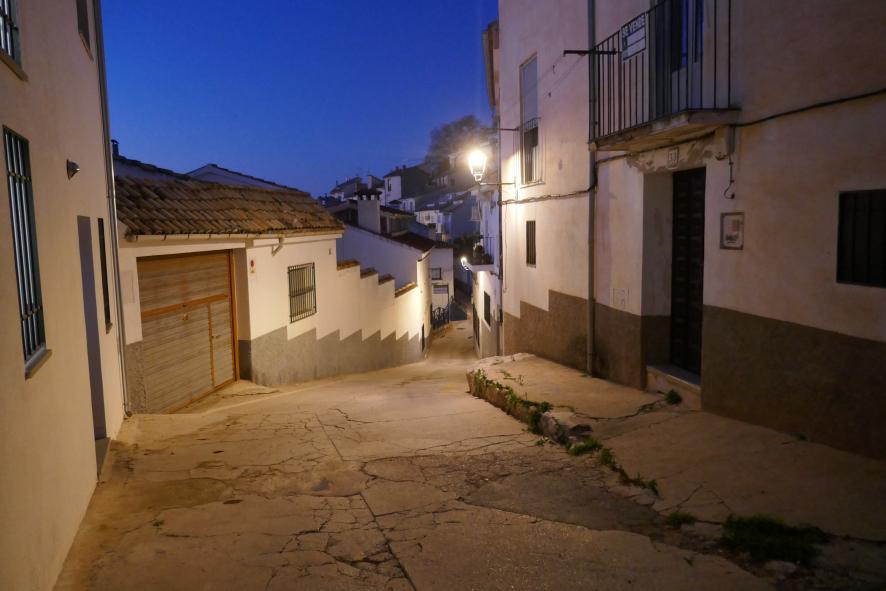 Una calle que baja fuerte,