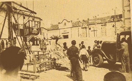 Creo que esta foto corresponde a los años 50, en esa fecha se desplomo toda la cúpula de la torre de la iglesia a causa de un terremoto, yo me acuerdo, porque estabamos jugando a la una mi mula, y a la ralla de francia.