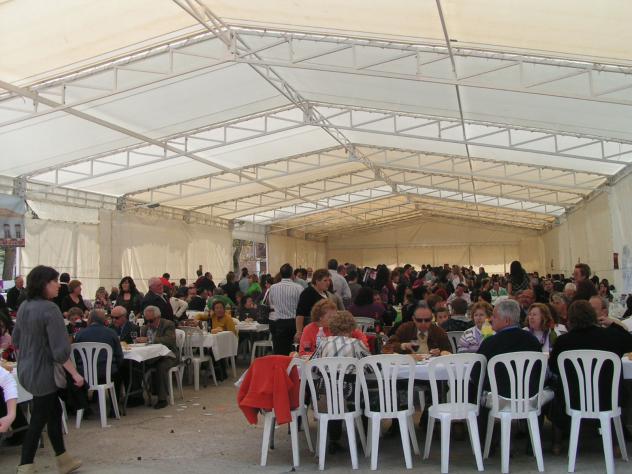 comiendo bajo la carpa,