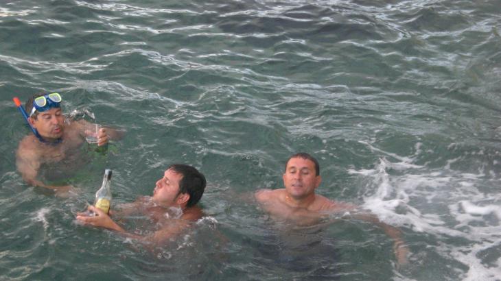 Mira ni se hunde ni la botella ni el, ni David Meca puede superar eso.