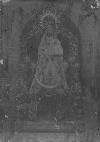Curiosamente la foto original está coloreada con anilinas y representa a la Virgen del Campo que fue destruida durante la contienda civil.