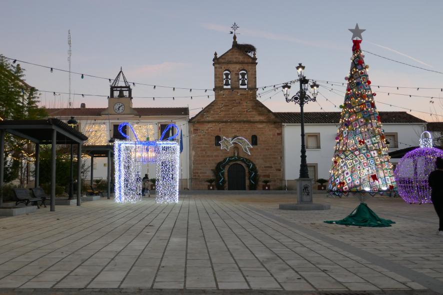 La plaza del Ayuntamiento adornada por Navidad,