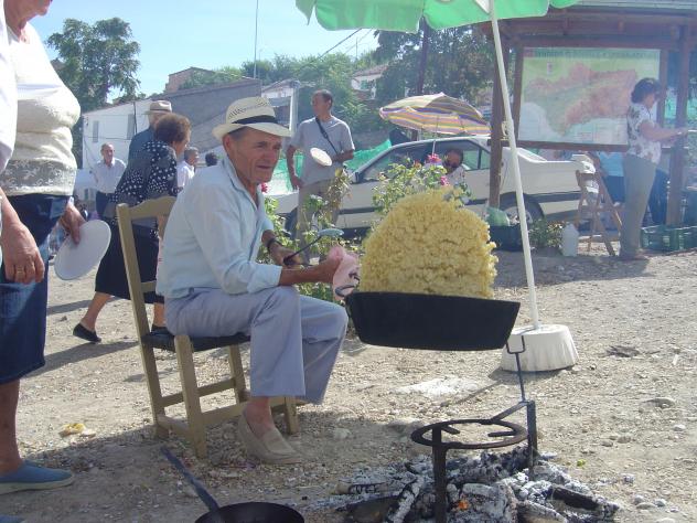 , se ve a mi hermano Pedro preparando las migas que tan ricas están.