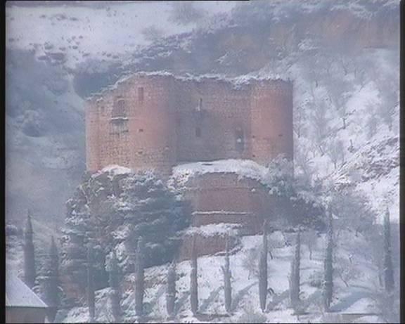 [googlebarvip= 8]. Me encanta esta foto, porque dice mucho de huelma. El contraste del sol en la nieve, evocaban tiempos pasados en los muros del Castillo;al atardecer de un dia de invierno gris.