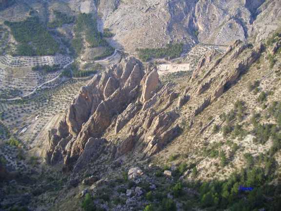 Ese destello o claridad que se aprecia en la margen izquierda del núcleo de montañas, corresponde a un enorme agujero que atraviesa la pared rocosa principal, que identifica a la calle de los moros.