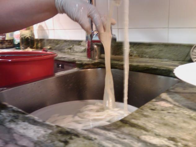 lavando las tripas,