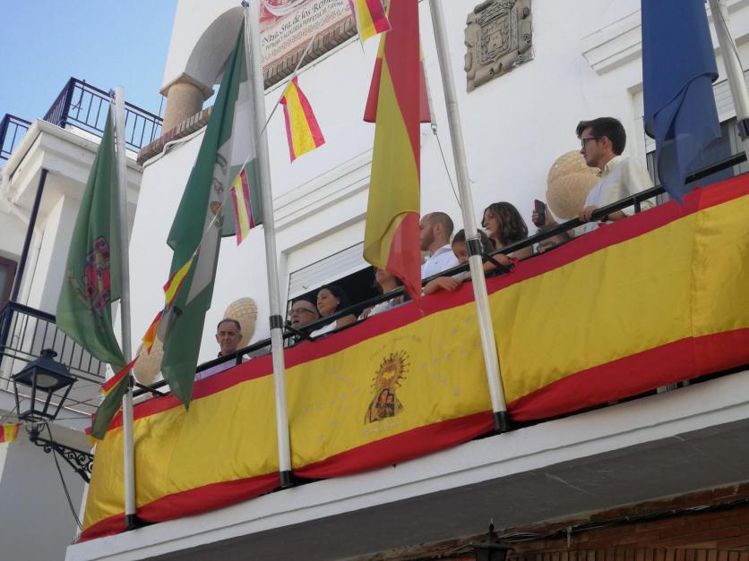 Lope dando el pregón junto a la corporación municipal y al frente la alcaldesa, Esther, a la que tuve el placer de conocer.
