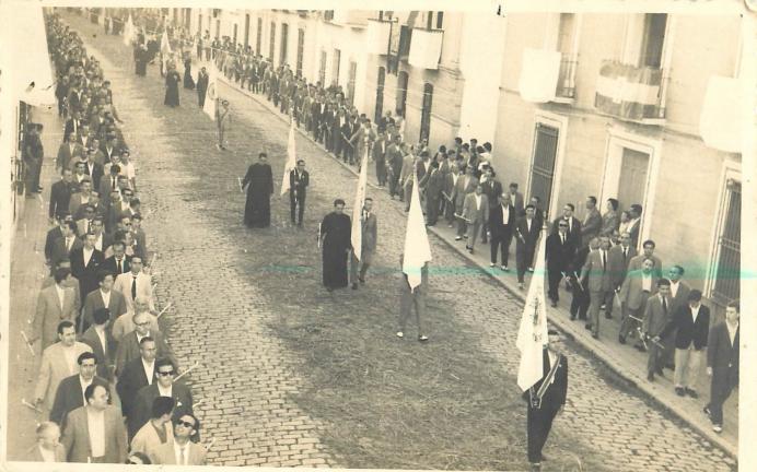 Podría ser? Jose, por el tipo de viviendas (con puerta acceso centrada y dos ventanas laterales, dos plantas) y el ancho de la calle, me recuerda mucho a la Av. Virgen de Cuadros de Bedmar, y la procesión va en dirección a la plaza de abajo, posiblemente la foto esté tomada desde la casa del cura, junto a la Iglesia de San José, quizás sea mucho decir.