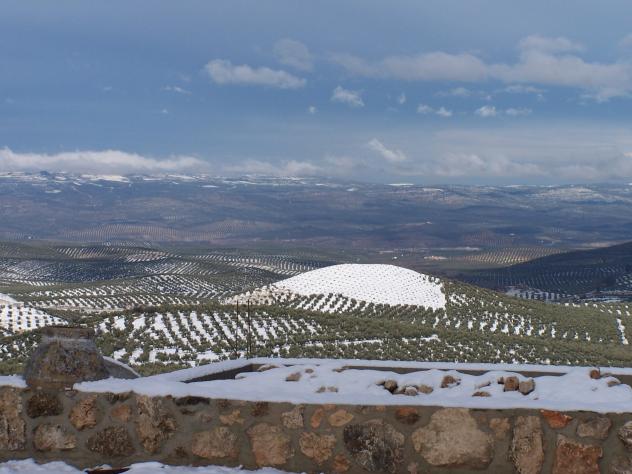 El cerro de los almendros nevado,