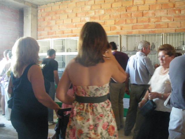 Cada palomo en su jaula y mucha gente viendo,