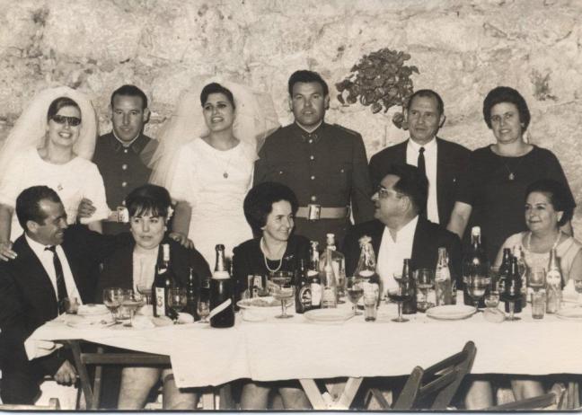 de pie de iz a dch, Remedios, su marido Enrique, Ana su marido Juanito, el padre de allas Andres su madre Ana Maria.