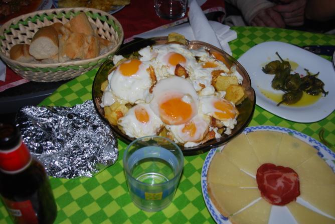 Esto es un manjar, los guevos recién puestos y las papas recién cogías, que deciros, los guevos rotos de