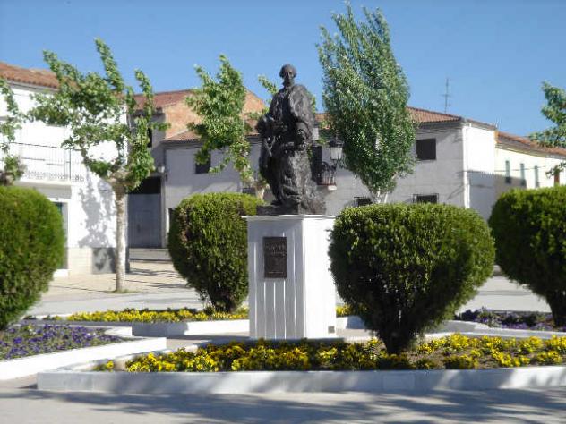 escultura del Rey Carlos III, en bronce de aproximadamente dos metros de altura, colocada en un pedestal recubierto de mármol que hace honor al fundador de las nuevas poblaciones de