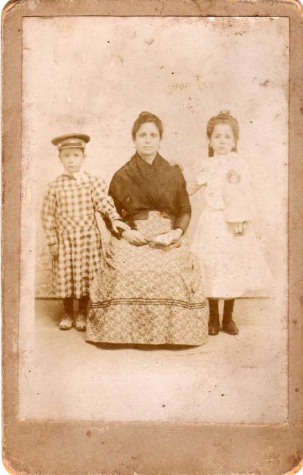 Francisca Torres Morante con sus hijos Gualverto Avío Torres y Piedad Avío Torres (todos de Siles), en Linares, antes de su viaje a Argentina.