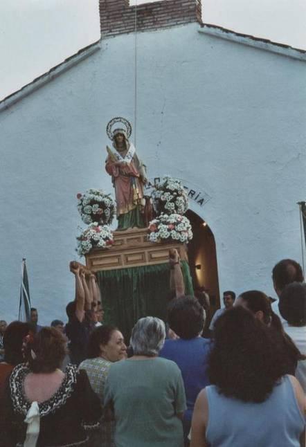 Hola que tal este año la romeria? La de azul es mi cuñada angelita y les mando muchos recuerdos de barcelona para mis sobrinos y hermano. Dentro de unas horas tus hijos te levatarán hasta tocar el cielo de tu pueblo para que nos bendigas siempre; porque aunque estés fuera de Sorihuela, no te olvidamos, siempre estás en nuestras vidas. ¡Protege a tu pueblo y ayudanos para que prospere! Al cielo con ella!!! Tras subir del río en procesión, Santa Quiteria es paseada por los chozos. Aquí se puede apreciar el momento final, cuando antes de entrar en la ermita es alzada y bailada al son del Himno Nacional. Y aquí surge la promesa plasmada en esta otra sevillana: