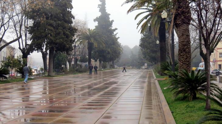 Paseo del Santo Cristo en una tarde lluviosa,