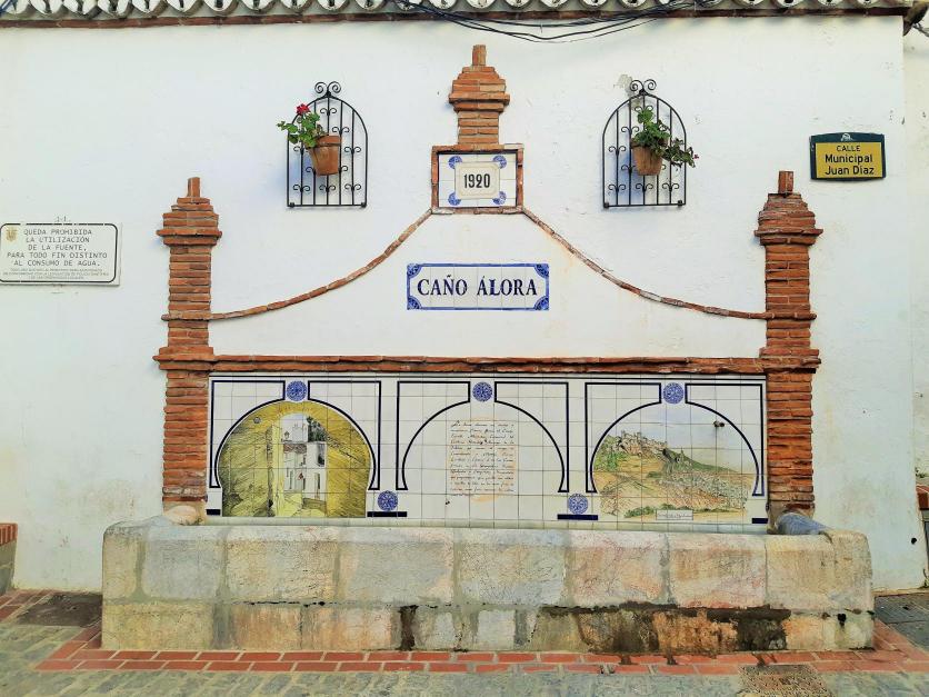 Caño Álora es una de las fuentes más bonitas de Casarabonela. De equilibradas proporciones, se ha de tener en cuenta la variada utilización de materiales (ladrillo, azulejo,