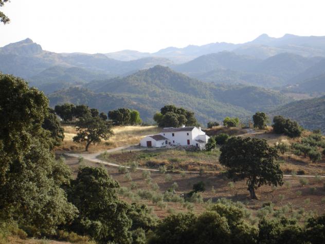 Cortijo ubicado en lo que en otro tiempo fue un encinar. Su nombre: "La Majada de los Puercos". Al fondo a la izquierda: "El Peñón de