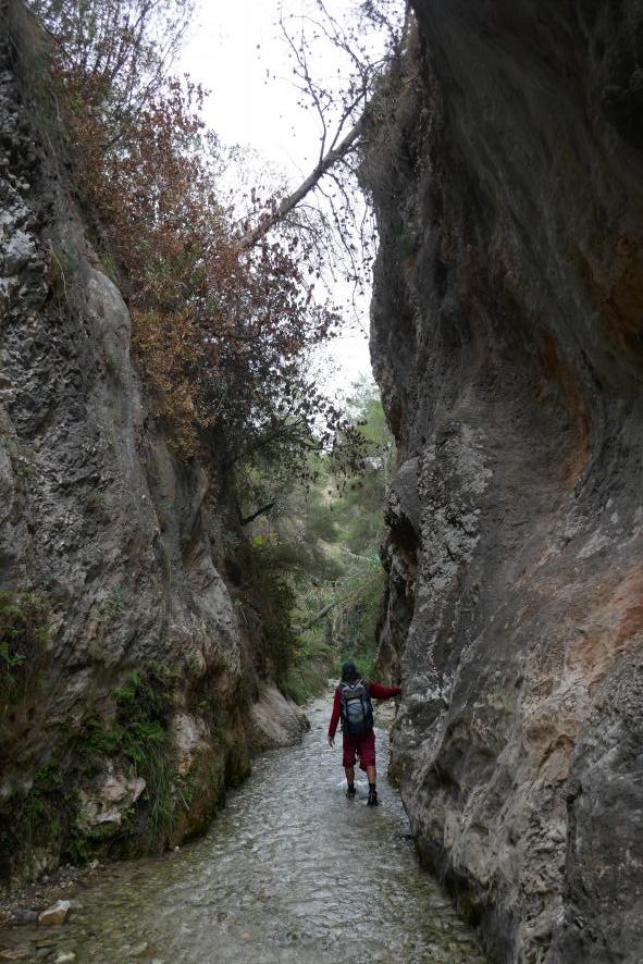 Un árbol caído puentea el barranco del río Chillar,