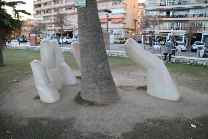 Dedos naciendo de la arena. Paseo Marítimo Rey de España,