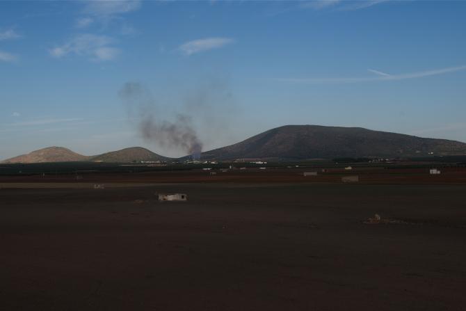 En primer termino la orujera contaminando el ambiente