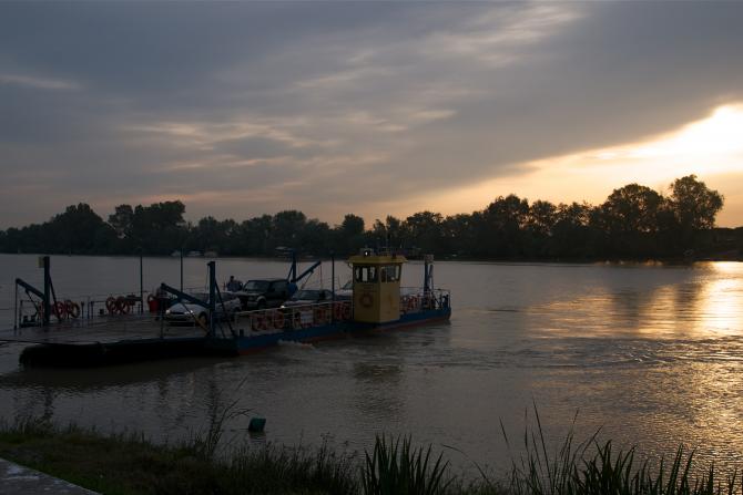 Barcaza-taxi en el río,