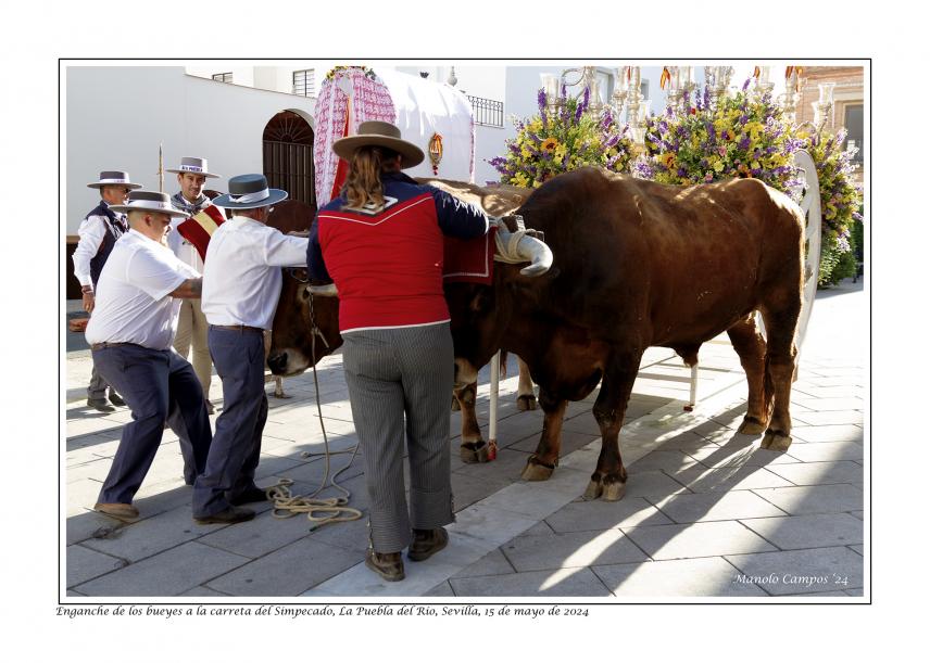 Enganche de los bueyes a la carreta del Simpecado,
