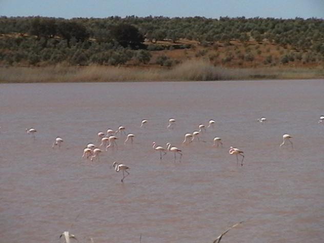 flamencos en la laguna,