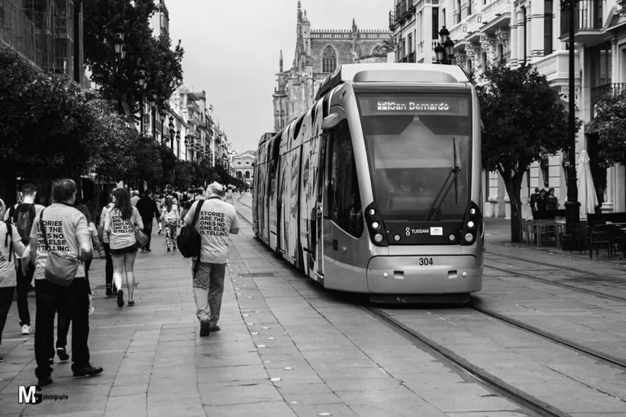 Avenida de la Constitución en sevilla con el tranvia,
