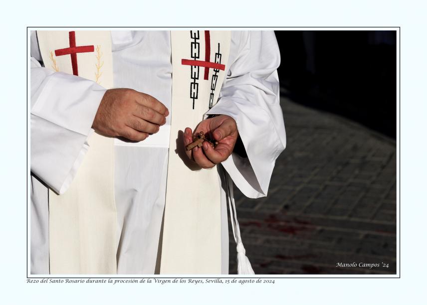 Rezo del Santo Rosario durante la procesión de la Virgen de los Reyes,