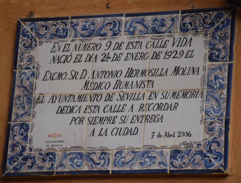 Placa dedicada a un médico ilustre nacido en el Barrio de Santa Cruz,