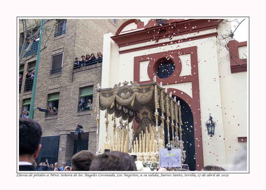 Lluvia de pétalos a Nuestra Señora de los Ángeles Coronada en su salida procesional, Jueves Santo,