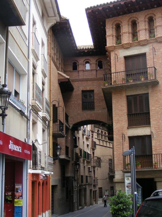 Este edificio puenteado es donde nacio Mon Señor Escriva de Balague, y creo que se puenteo, cuando reformaron la casa, y a ver si los barbastrenses viejos, se animan a poner fotos de su epoca, pero detallando año y situacion, y nombre de los personajes, si los hay. Saludos, de un viejo paisano que vive fuera del "Barranque ", años ha.