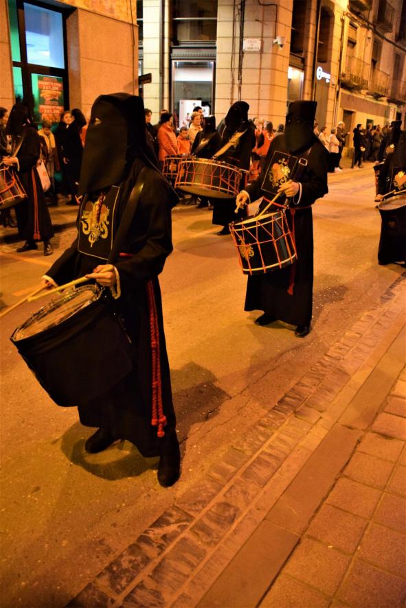 Cofrades durante la Procesión General del Viernes Santo,