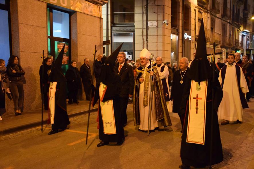 Monseñor Pérez Pueyo, obispo de la diócesis de Barbastro, en la procesión del Viernes Santo,