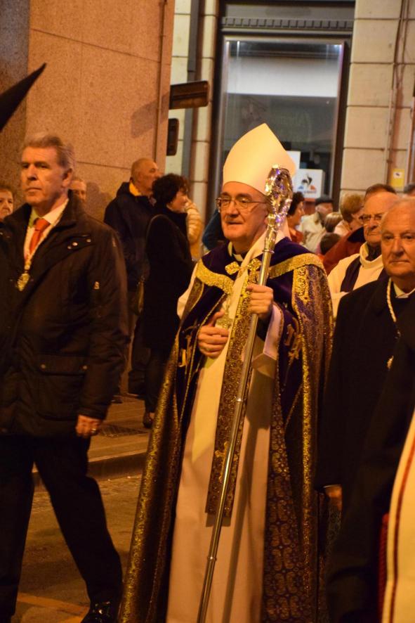 Monseñor Pérez Pueyo, obispo de la diócesis de Barbastro, en la procesión del Viernes Santo,