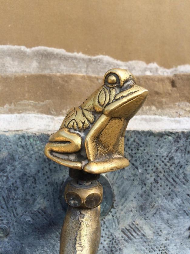 Detalle del grifo de la fuente en el monumento al peregrino,