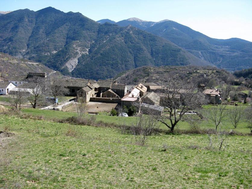 "Se ha comparado a este lugar, por su excelente posición, a un balcón colgado de la montaña. Sito a 1.113 metros de altitud, en una loma abancalada desde la que puede contemplarse, en amplia panorámica, gran parte de la ribera del Ara y el Valle de Broto, tiene, por tanto, un asiento privilegiado, junto a la cortada labrada por la corriente del Sorrosal, enmarcada por un bello paisaje pirenaico y con un territorio sembrado de prados y bordas en el que destaca la singular presencia de su puente medieval."