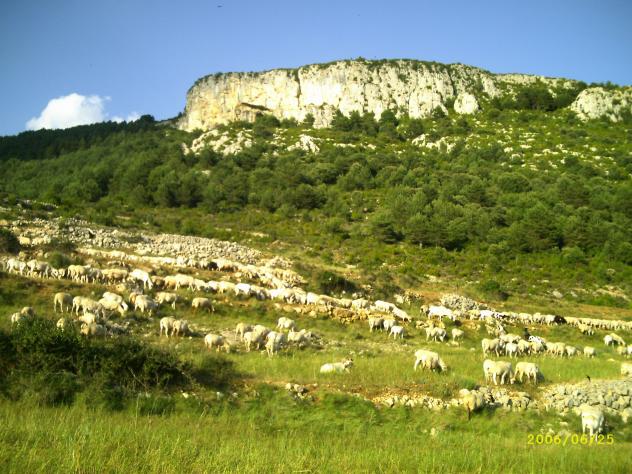 rebaño de ganadero transhumante pastando debajo de las "covas"