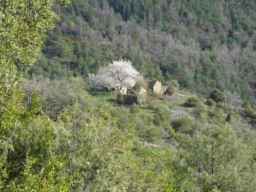 Aldea abandonada desde el camino,