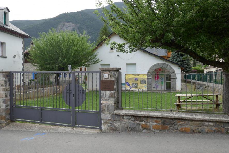 La escuela con su patio de cesped,
